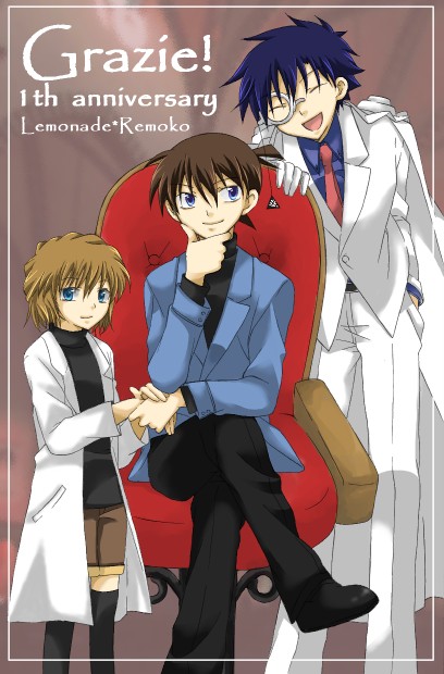 フリー絵でしたのでありがたくいただいてきましたv 一週年フリー絵だそうです〜。おめでとうございます! 二つも花をはべらせて・・とんだ女王さまっぷりですね!新ちゃん!!(笑) てゆーか、哀ちゃん!!美人だよー!!美人だよー!! なにその微笑!!やめてよ、誘拐したくなるじゃない!!(真顔/お前がやめろ) れも子さんのサイトは『Lemonade』 Back<< 4 >>Next