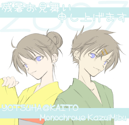 フリー絵でしたのでありがたくいただいてきちゃいましたv ピンつけた快斗くんが可愛らしくて・・もーーvv 残暑お見舞いありがとう!!!(爆) 壬生かずいさんのサイトは『Monochrome』 Back<< 5 >>Next